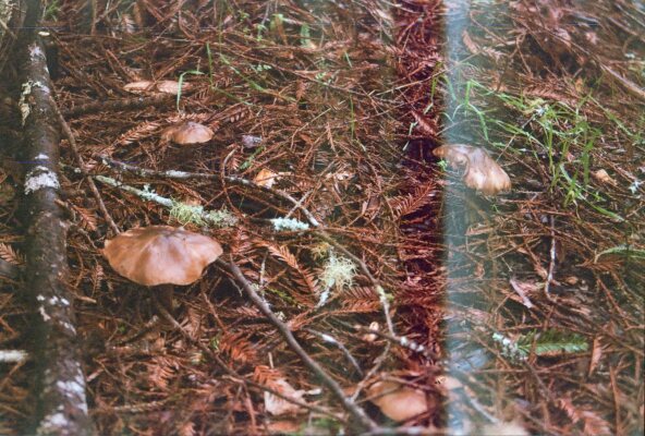 Early in the year, a visiting friend of my parents motivated us to travel due west to a little tourist town on the Russian River called Guerneville. It was perhaps an odd choice to visit during the moist and windy winter, but I certainly didn't mind! I had the opportunity to slide into a mushroom foraging event at Westminster Woods, the coolest-looking summer camp I've ever witnessed. I spent more time talking to people about mushrooms (and their lives) than looking at mushrooms, but I think that's kinda the point.