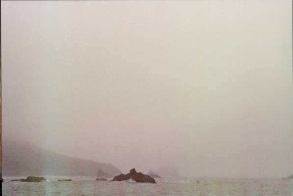 Of course if we were going to go all the way out to Guerneville, we'd need to finish the job and see the blustery, foggy, drizzly coast of the Sonoma Coast State Park. We got two of those for sure, but the kite I packed for the occasion couldn't catch the breeze despite seeming like it could almost get wedged up in the fog. Definitely had some kind of light-leak going on here!