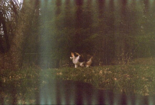 Honestly I burned a lot of rolls in the spring trying to take a good picture of Chex the cat. She's always around the house, comes when she's called, and loves being held, but I've been having the damnedest time getting a good picture that captures her character. So here she is looking like a criminal on a CCTV still.